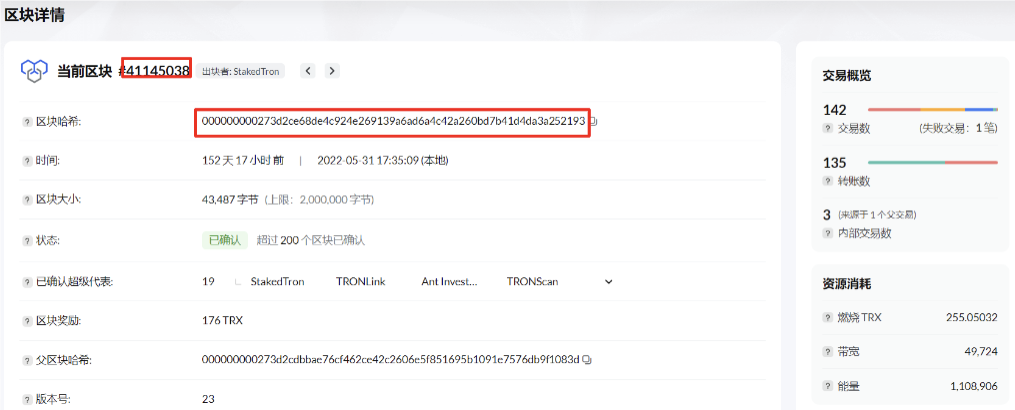 例:如果区块#41145038 的哈希值是